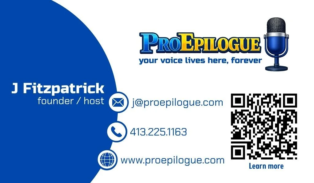 The personalized podcast where you share a heartfelt message: an epilogue of love, wisdom, or remembrance meant for the people who mean the most to you. Your personal recording is designed to be heard posthumously, offering comfort, connection, and a lasting voice in a time of grief. It's a reminder that even when you're no longer here, your words can still bring peace, spark laughter, and keep your spirit alive.